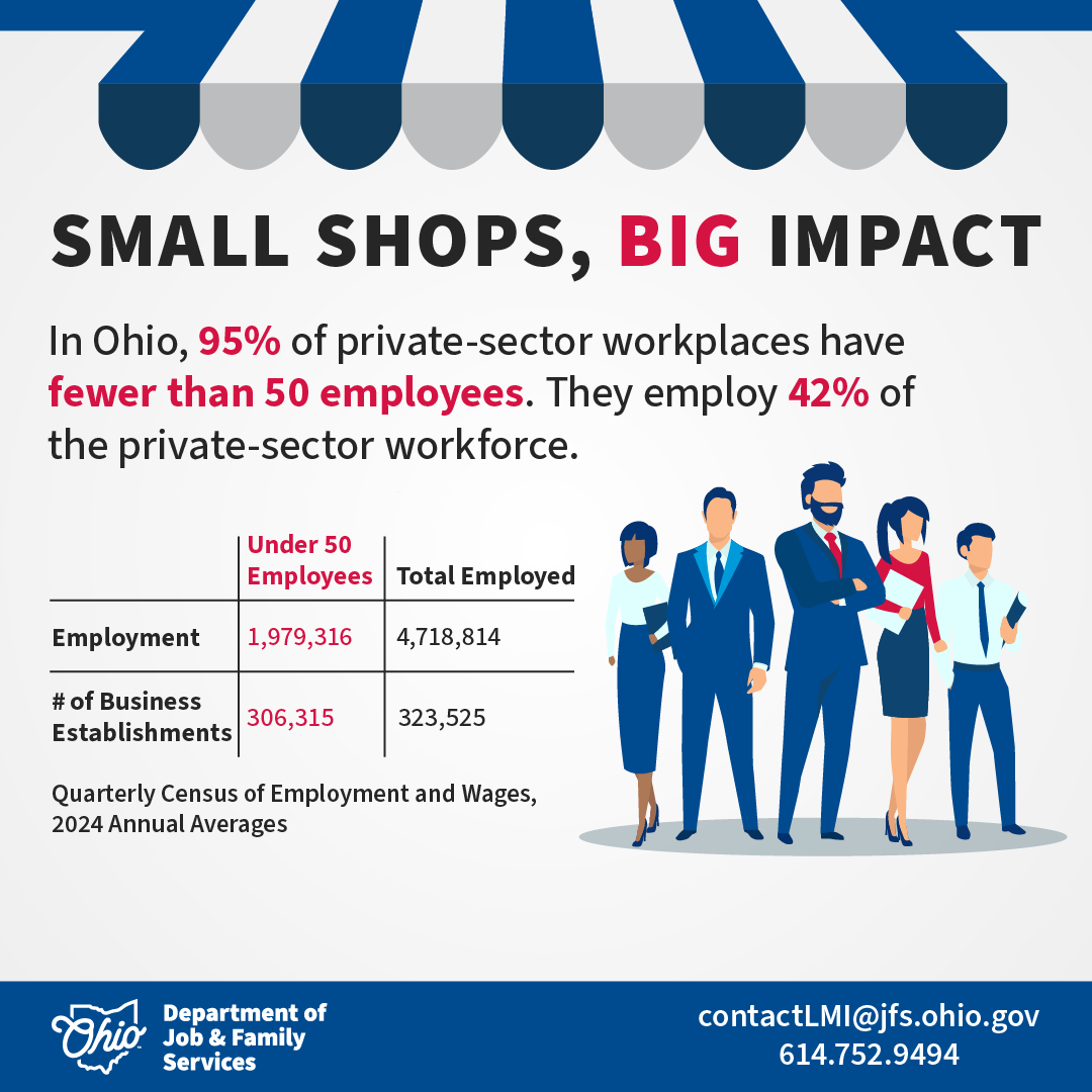 November 2025In Ohio, small establishments comprise 95% of private sector sites and employ 42% of the private workforce!